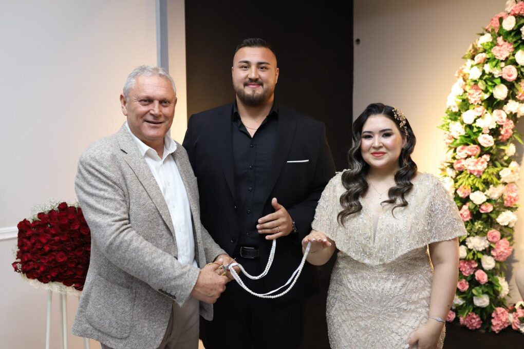 Kemer Belediye Başkanı Necati Topaloğlu, Kemer Belediye Güreşçisi Kemal Berke Kaya ile Nihal İrban’ın söz yüzüklerini takarak, genç çifti ve ailesini tebrik etti.