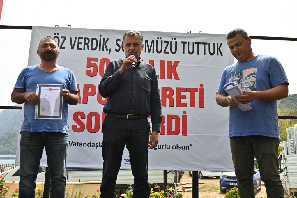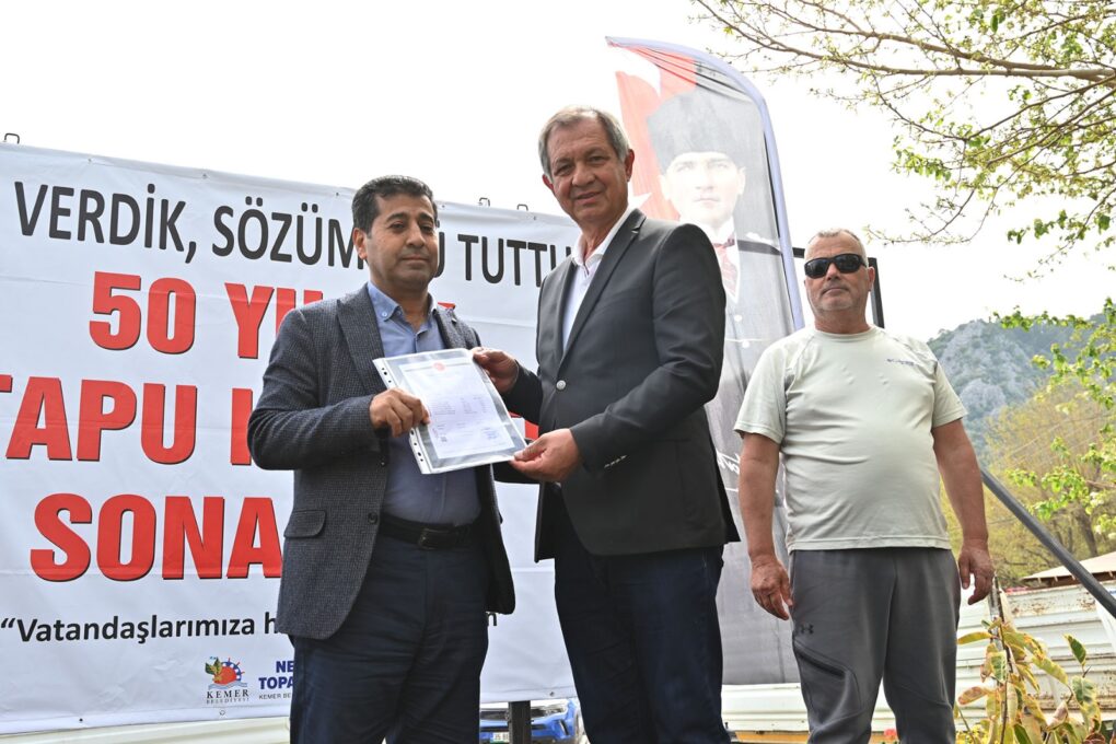 Program sırasında sahneye çıkarak tapularını alan vatandaşlar, Kemer Belediye Başkanı Necati Topaloğlu ve ekibine teşekkür etti.