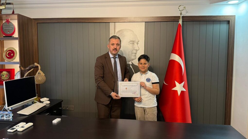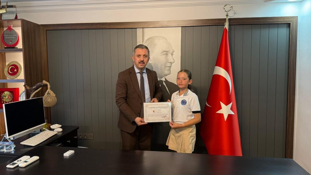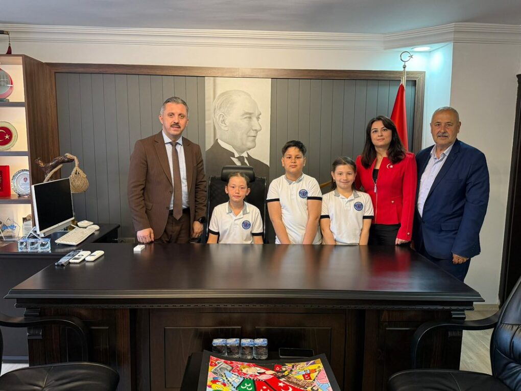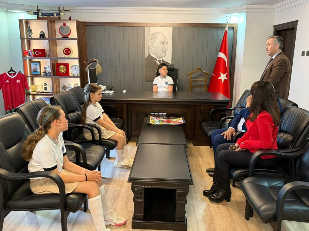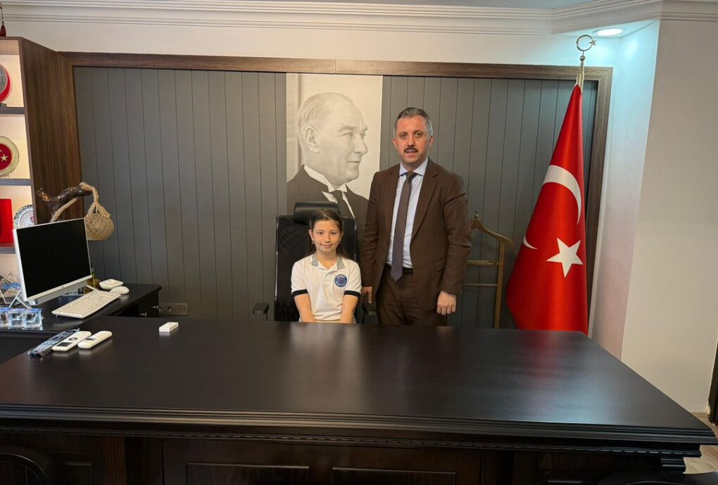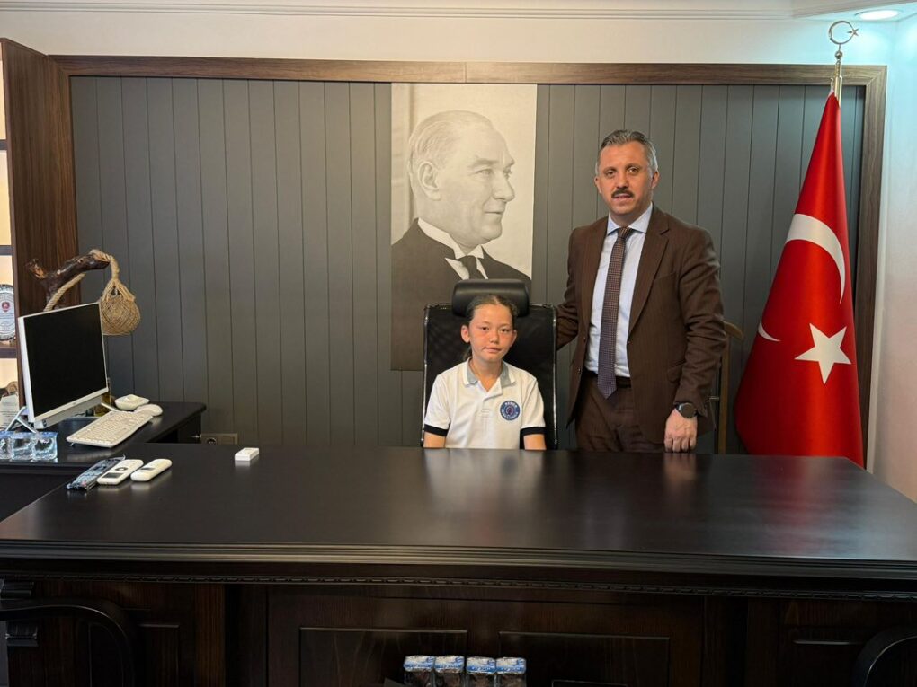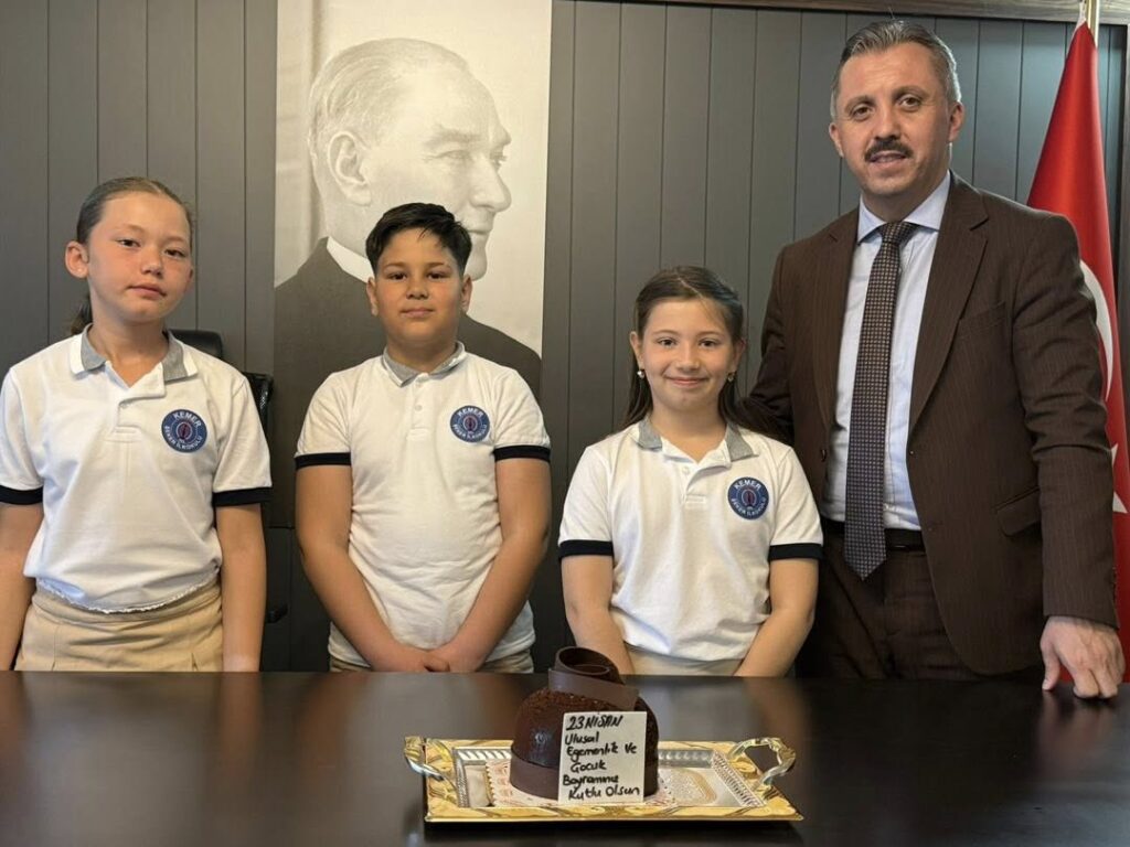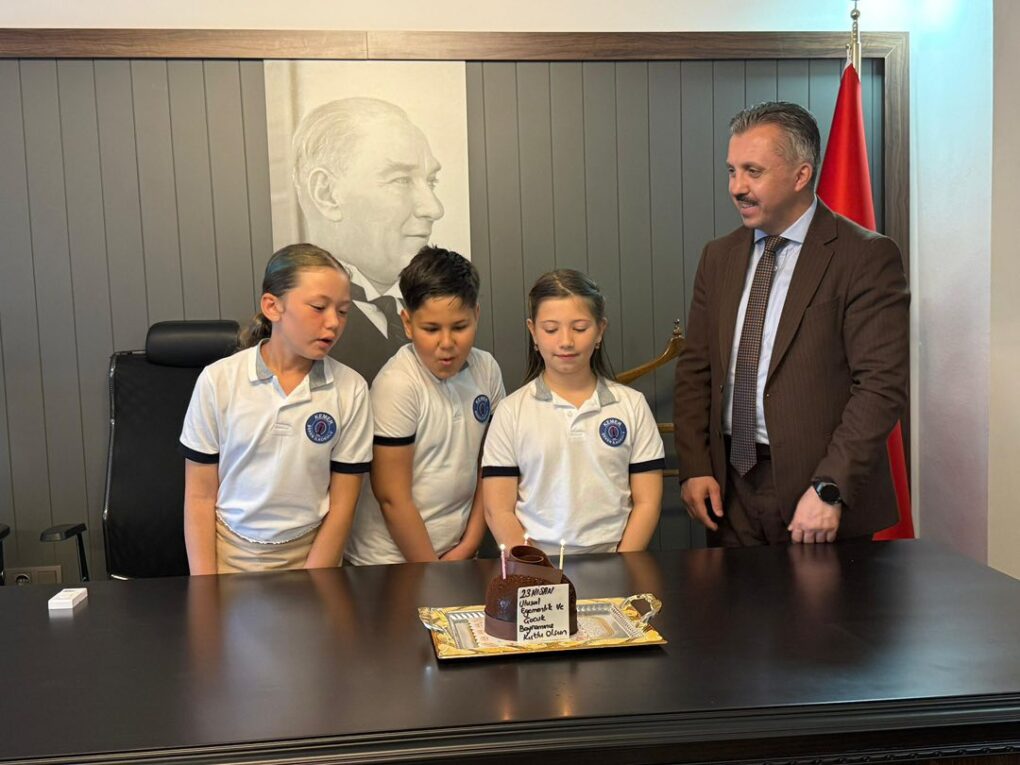 23 Nisan Ulusal Egemenlik ve Çocuk Bayramı kapsamında, Şeker İlkokulu öğrencileri Asiye İSPİR, Mira Keskin ve Ege Gül, temsili makam ziyareti gerçekleştirdi.
