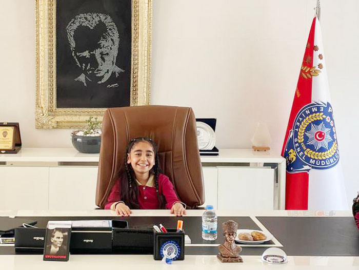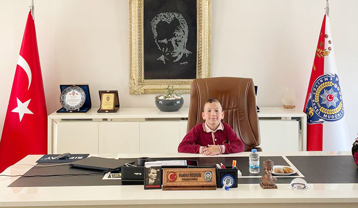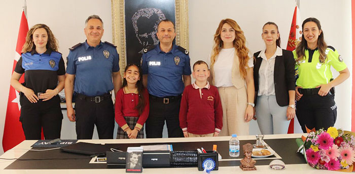 Beldibi İlköğretim Okulu öğrencileri de 23 Nisan kapsamında Kemer İlçe Emniyet Müdürlüğü’nü ziyaret etti. Emniyet teşkilatıyla bir araya gelen öğrenciler, temsili olarak emniyet müdürlüğü makamına oturarak görev devraldı.