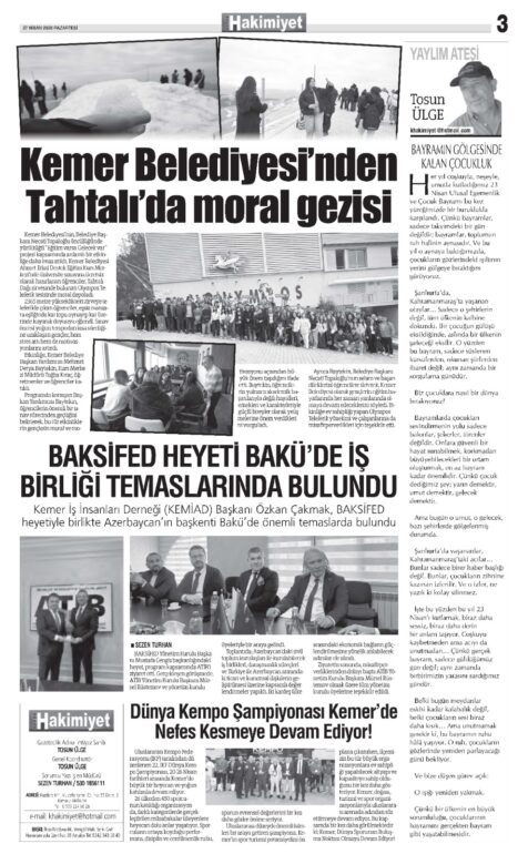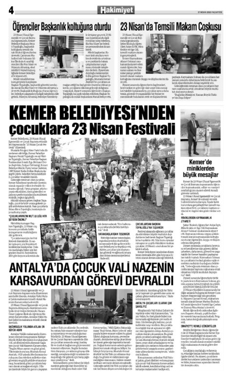 27 NİSAN 2026 KEMER HAKİMİYET GAZETESİ